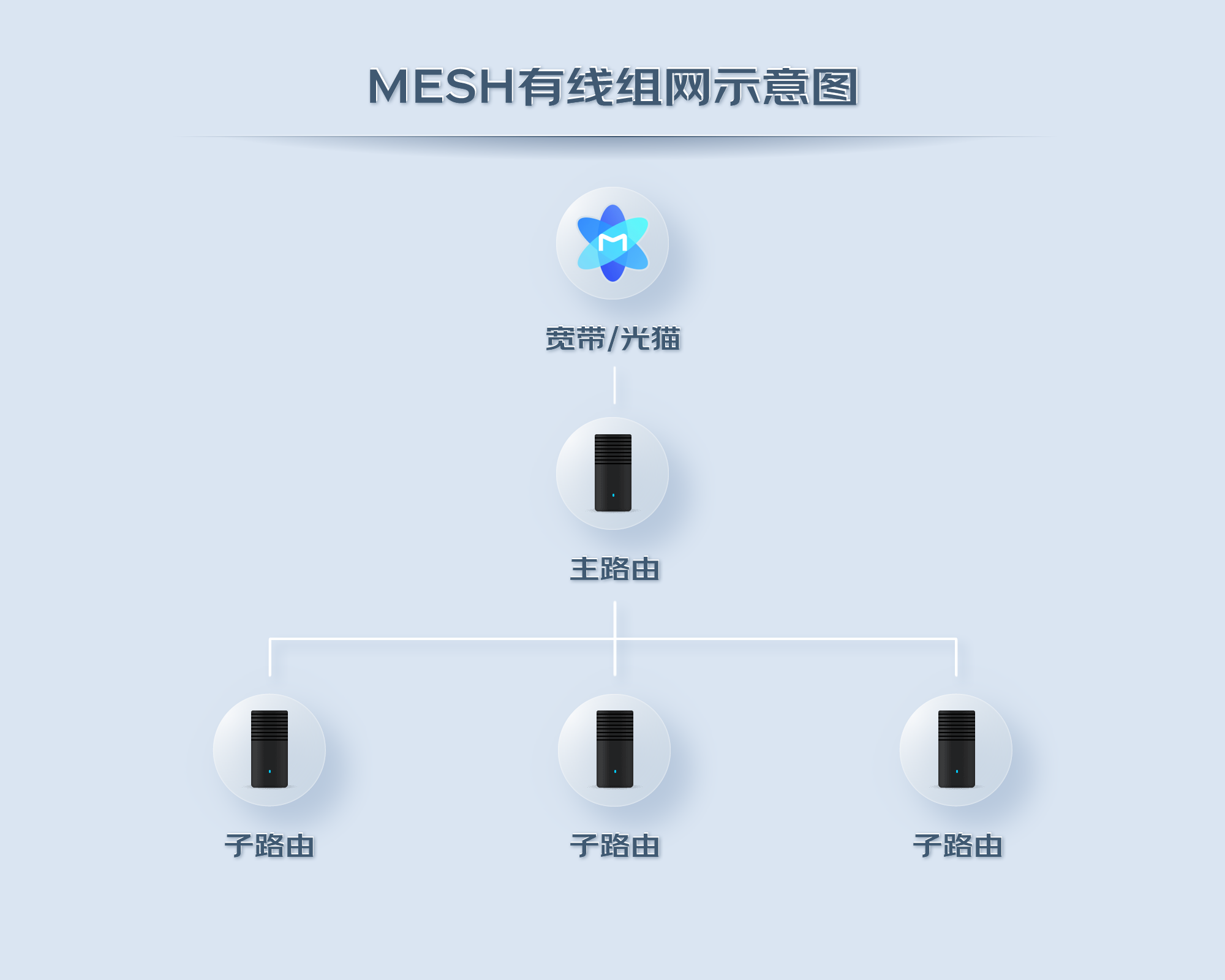 2. 完成主路由模式的切换后,子路由可选取有线或无线组网的方式以完成 MESH 组网。